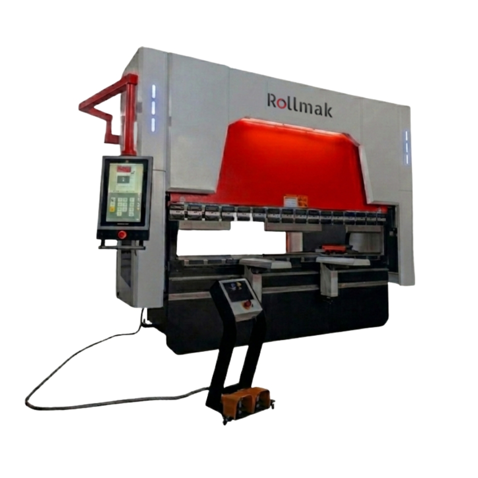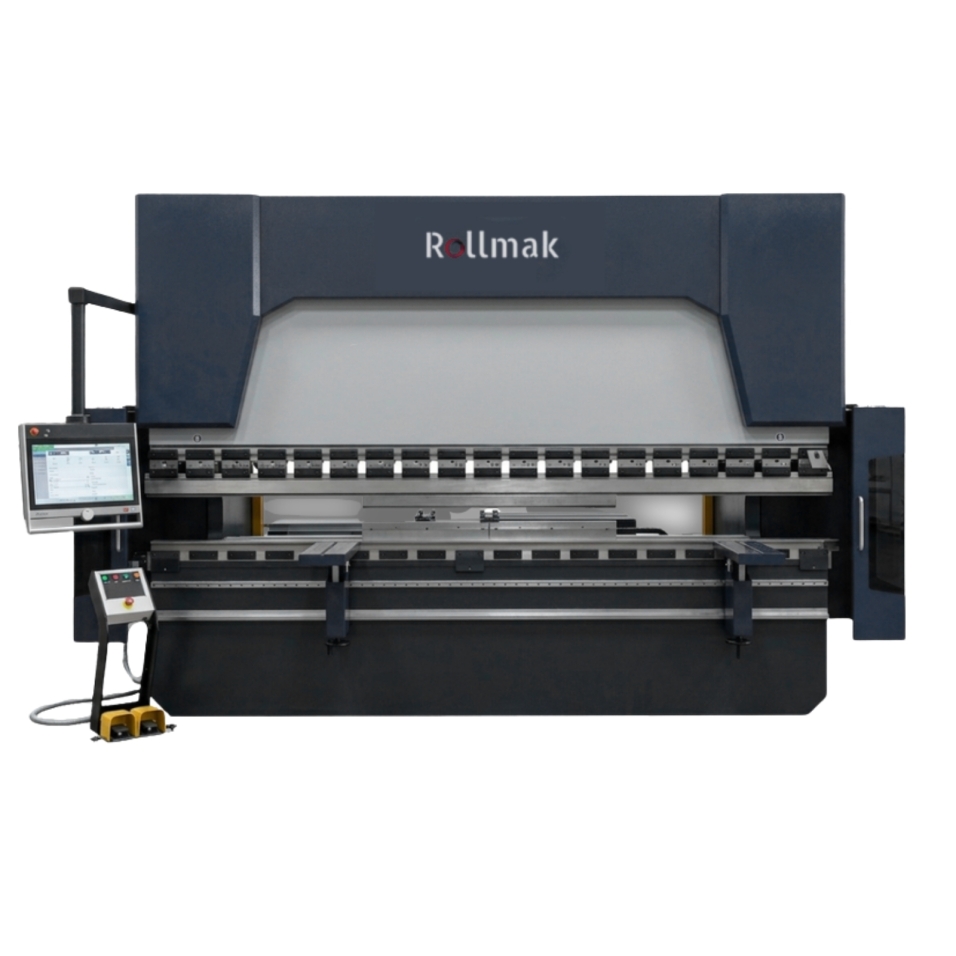 Prensa plegadora hidráulica CNC RPB. Bastidor liberado de tensiones, sistema hidráulico preciso, pistones cromados, tope trasero pesado para plegado perfecto.