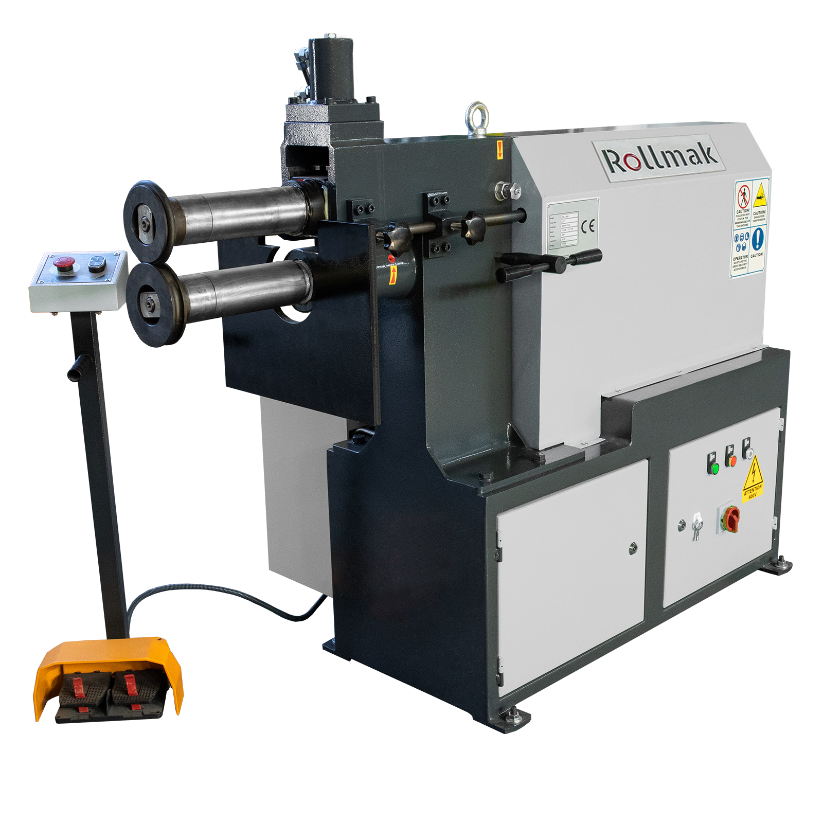 Bordureuse hydraulique BMH. Bâti acier, arbre hydraulique, galets réglables. Inclut 4 jeux de galets et socle. Conforme CE.