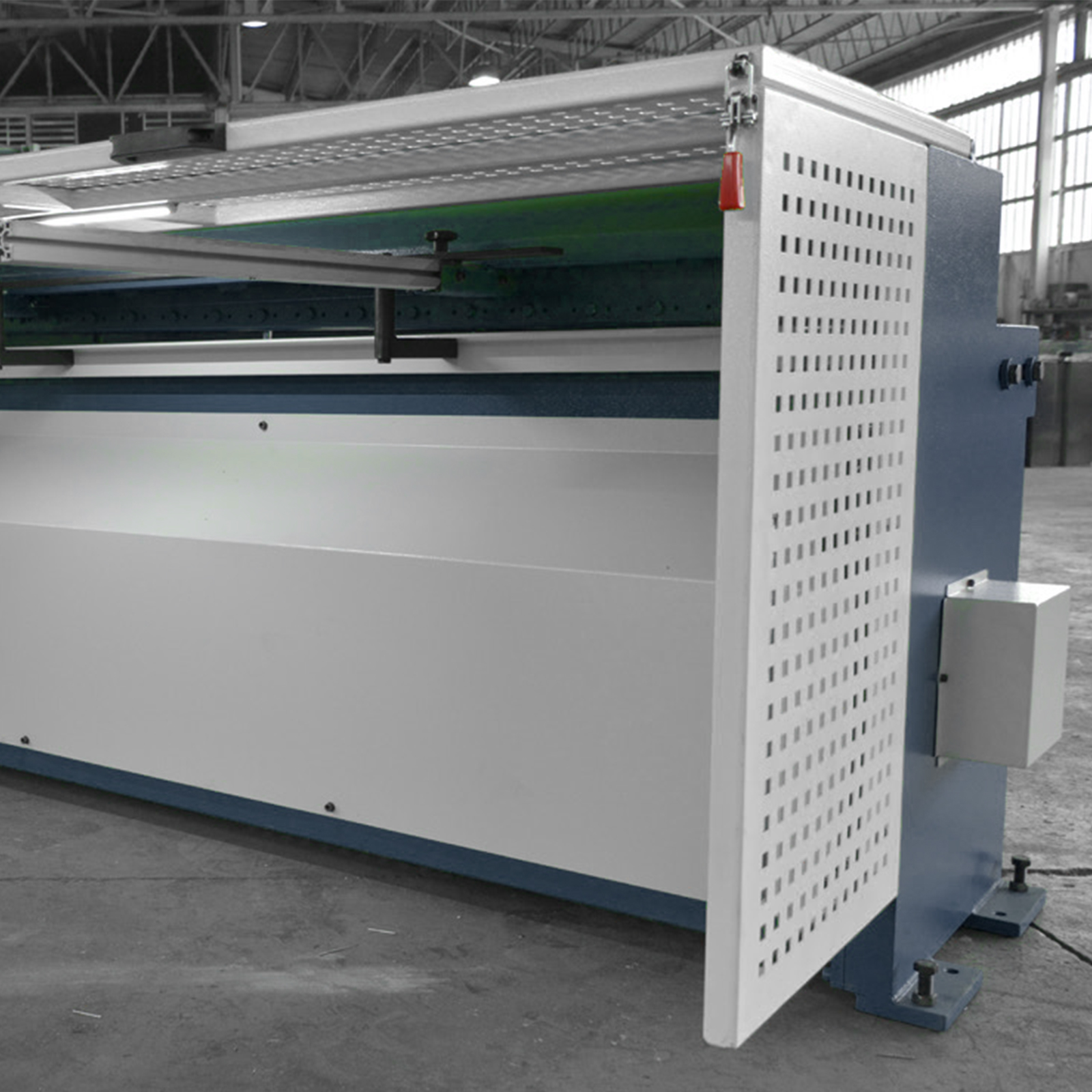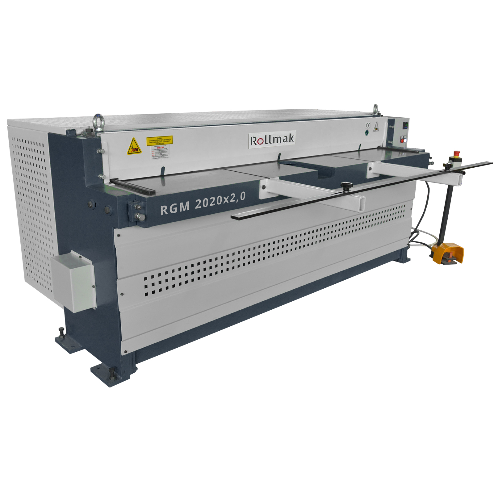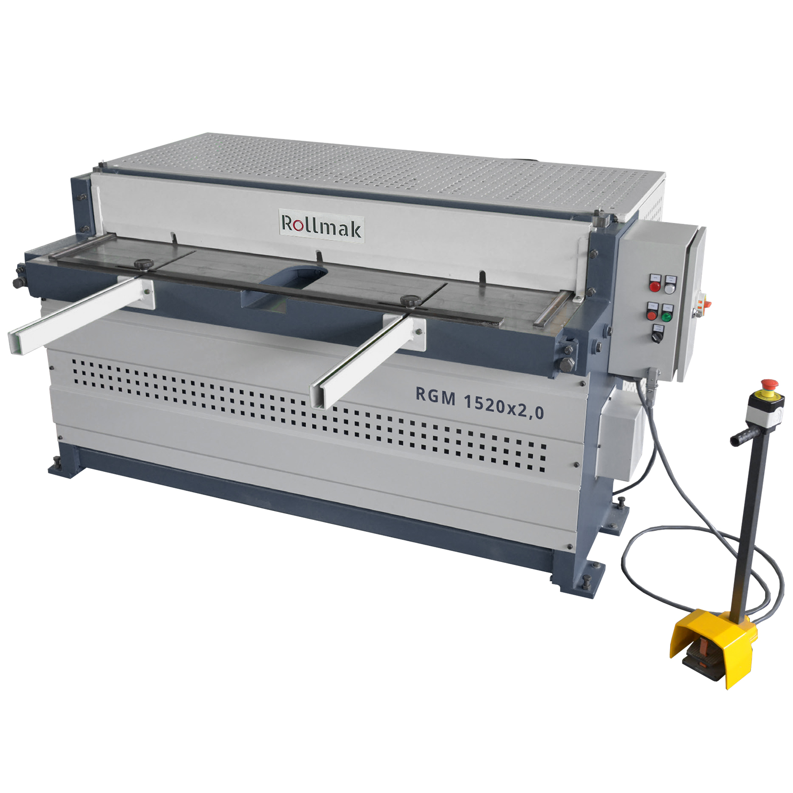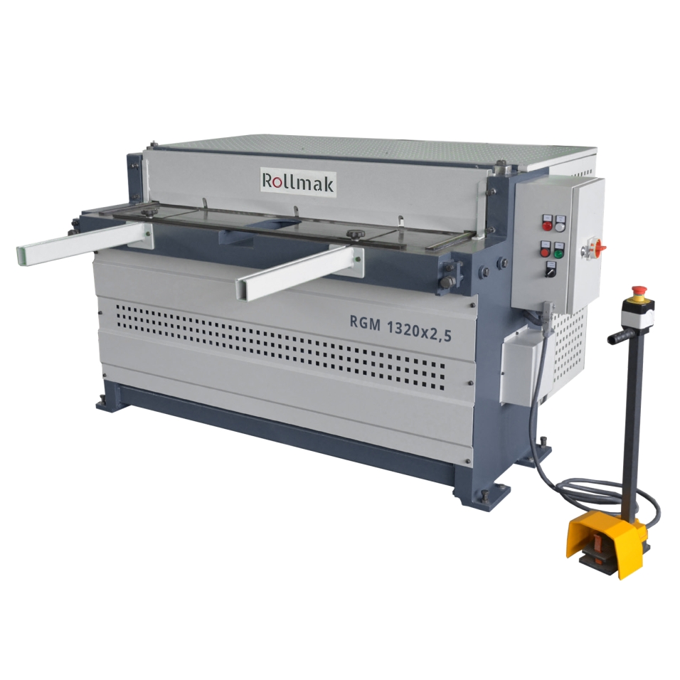 Cisaille guillotine motorisée RGM. Bâti fonte, réducteur silencieux, lames 4 côtés, affichage numérique. Coupe précise de tôle avec sécurité maximale.