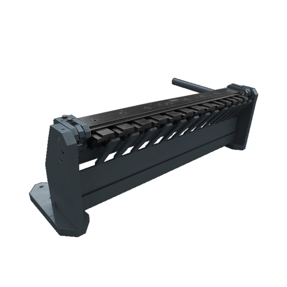 Plieuse manuelle RK-TDF pour CVC. Lame inférieure segmentée pour brides TDF. Bâti acier, contrepoids. Fabrication de gaines.