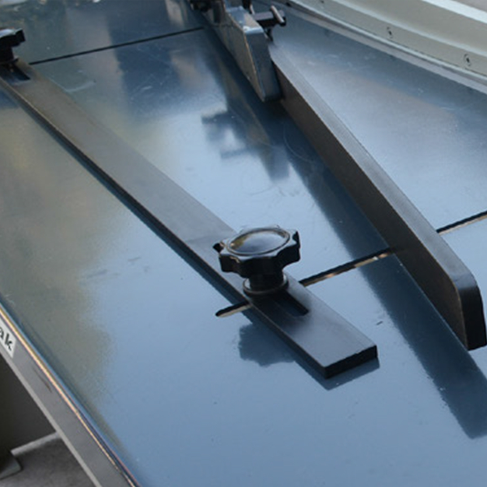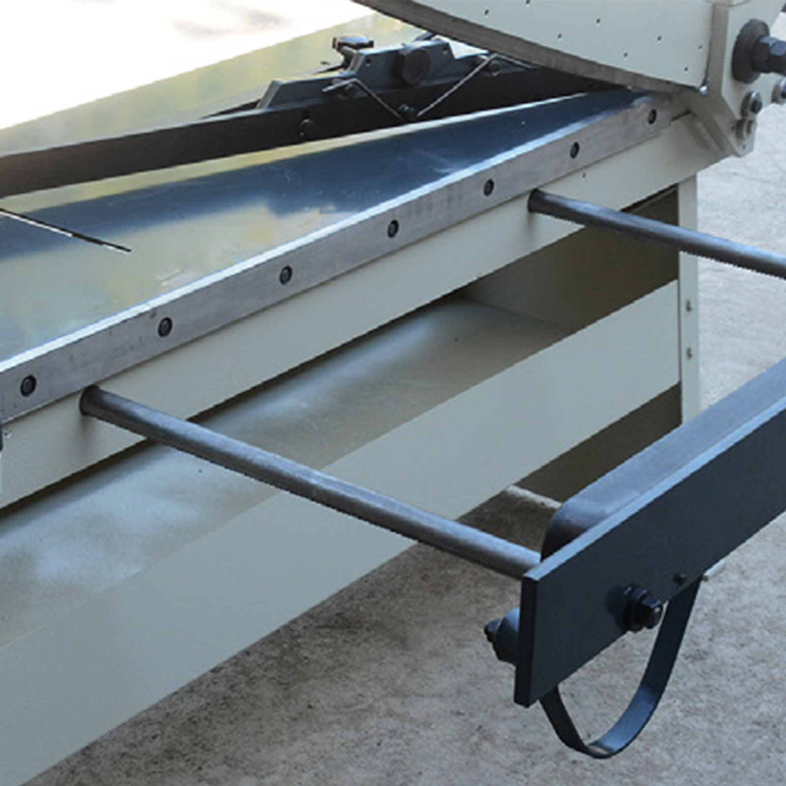 Cisaille manuelle RKM à double crémaillère. Bâti acier, butée arrière à crémaillère, coupe d'angle. Machine robuste pour tôlerie.