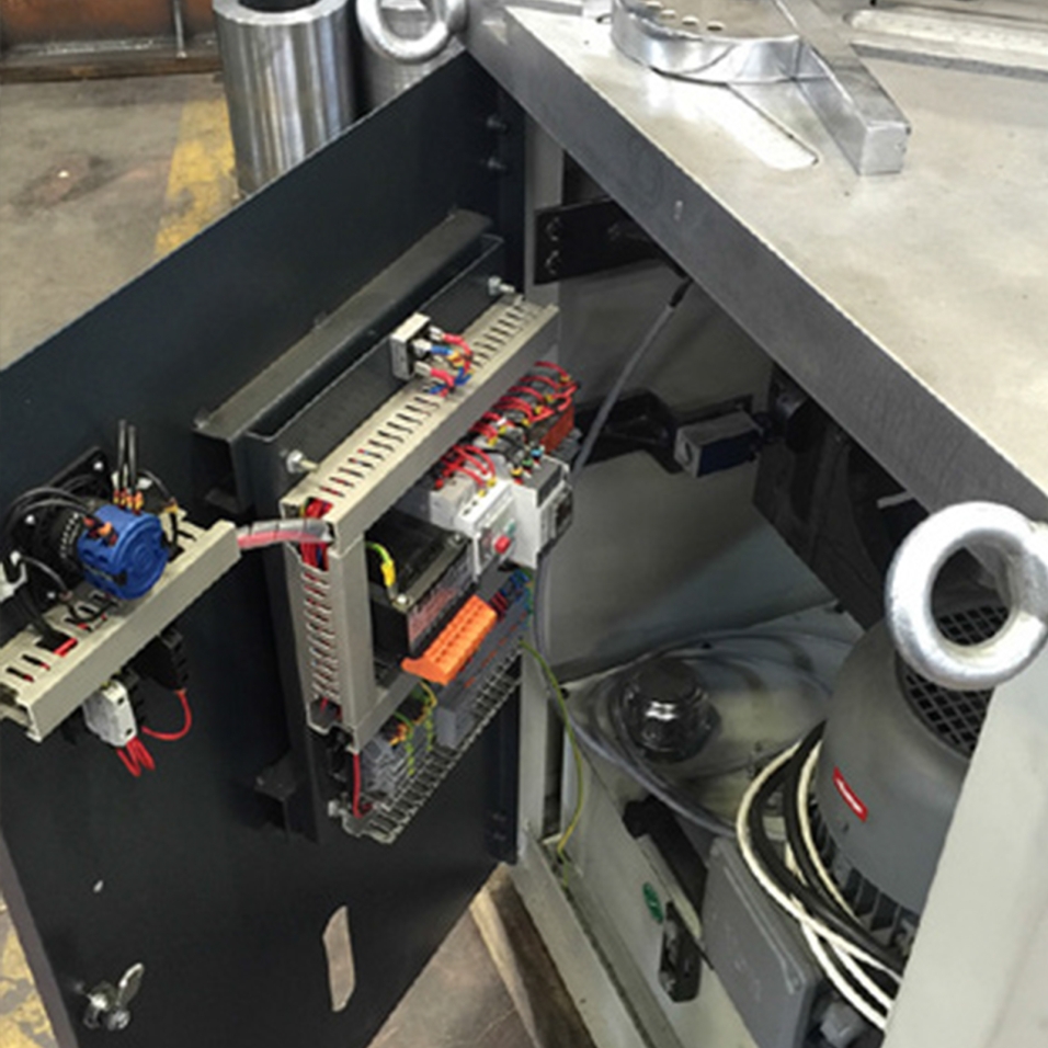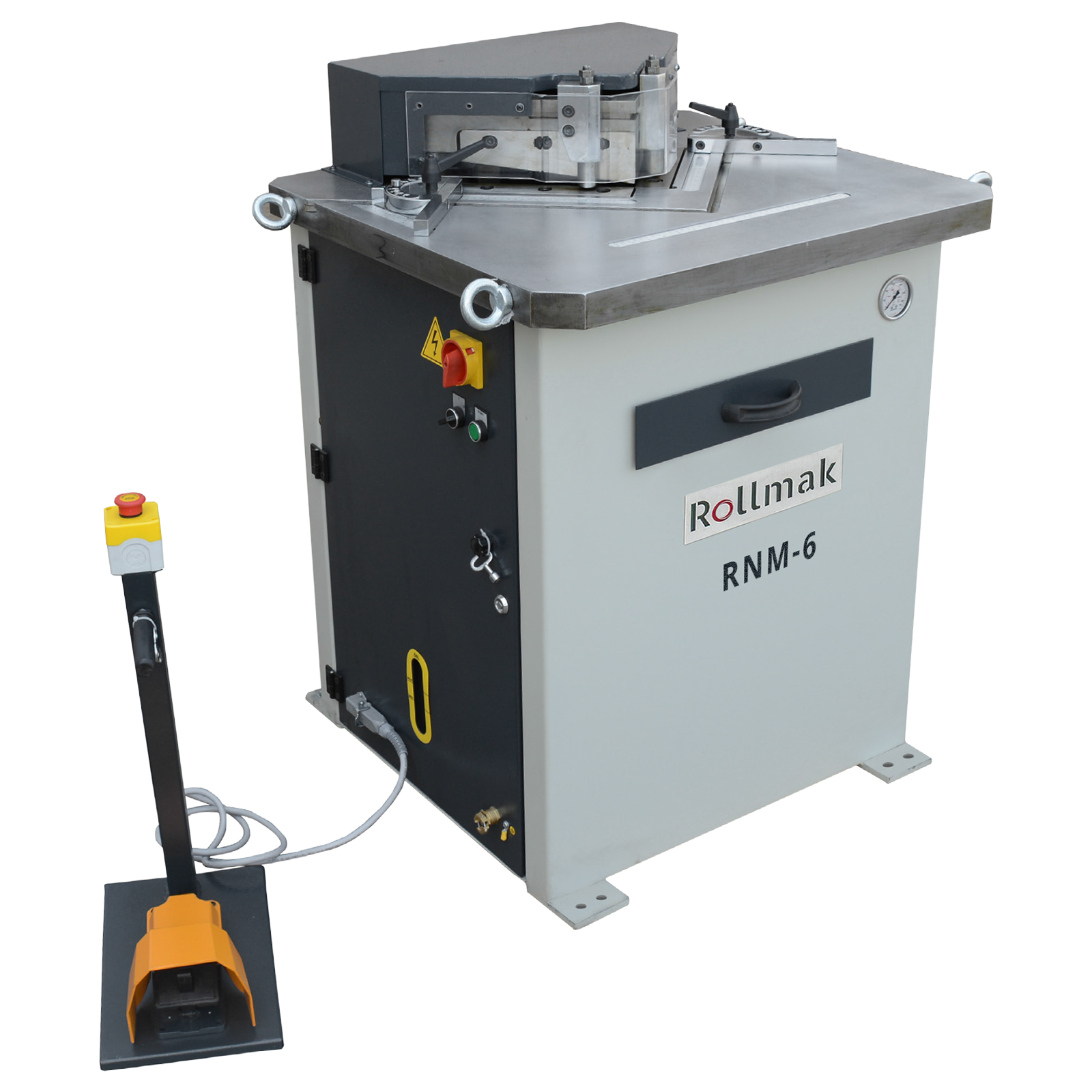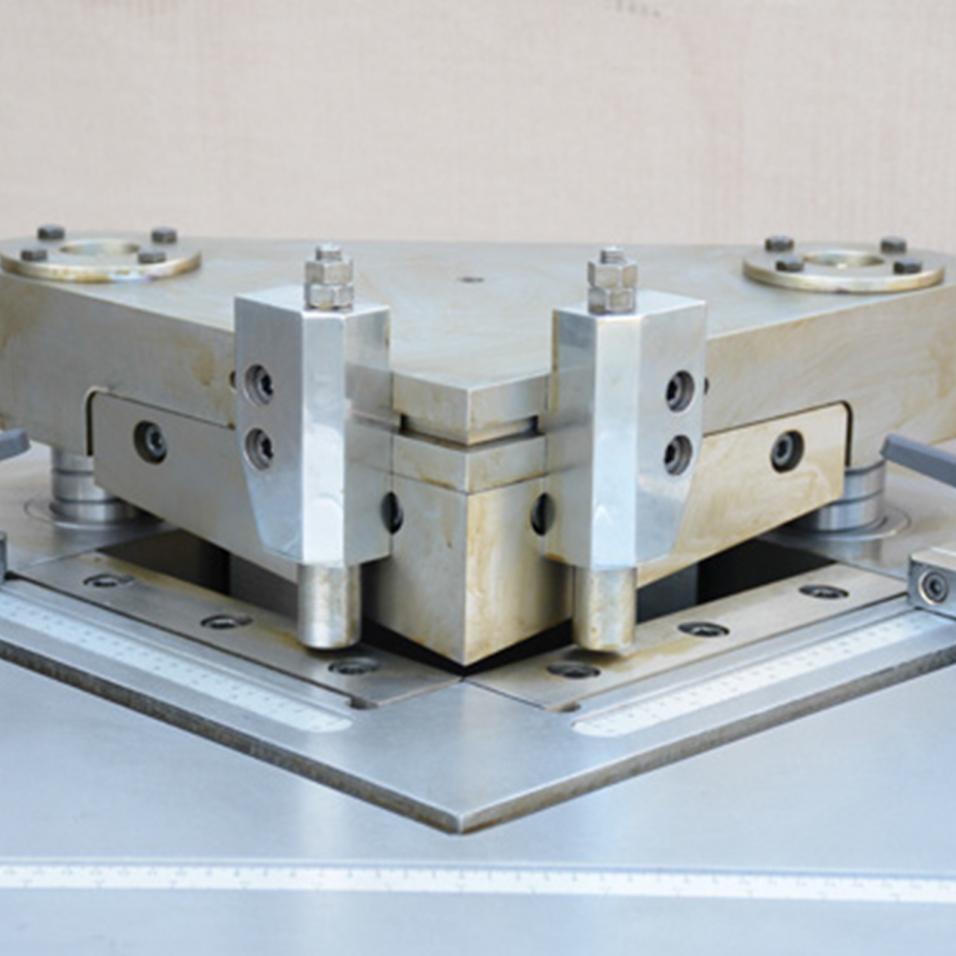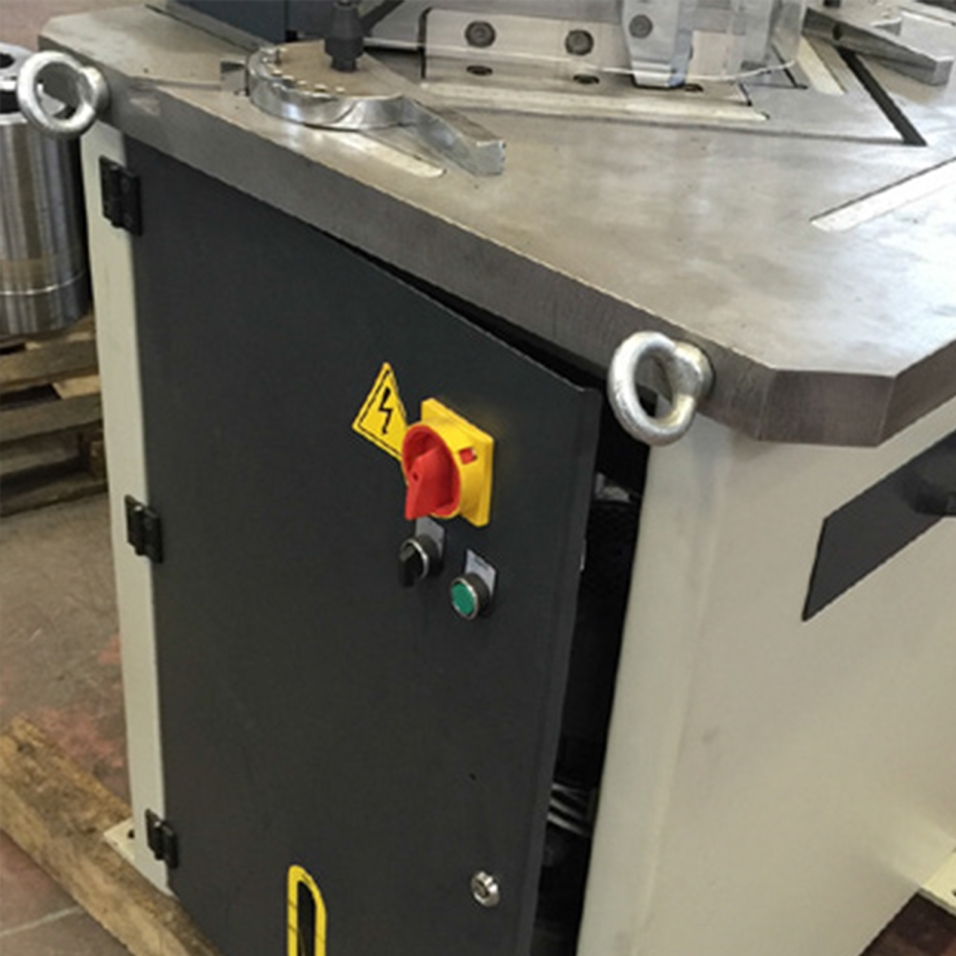 L'encocheuse hydraulique RNM-6 à angle fixe de 90° est conçue pour couper des tôles jusqu'à 6 mm d'épaisseur. Elle offre une capacité d'encochage maximale de 250x250 mm. Cette machine se distingue par sa structure compacte, son faible encombrement et sa vitesse de travail élevée, facilitant ainsi les opérations de tôlerie.